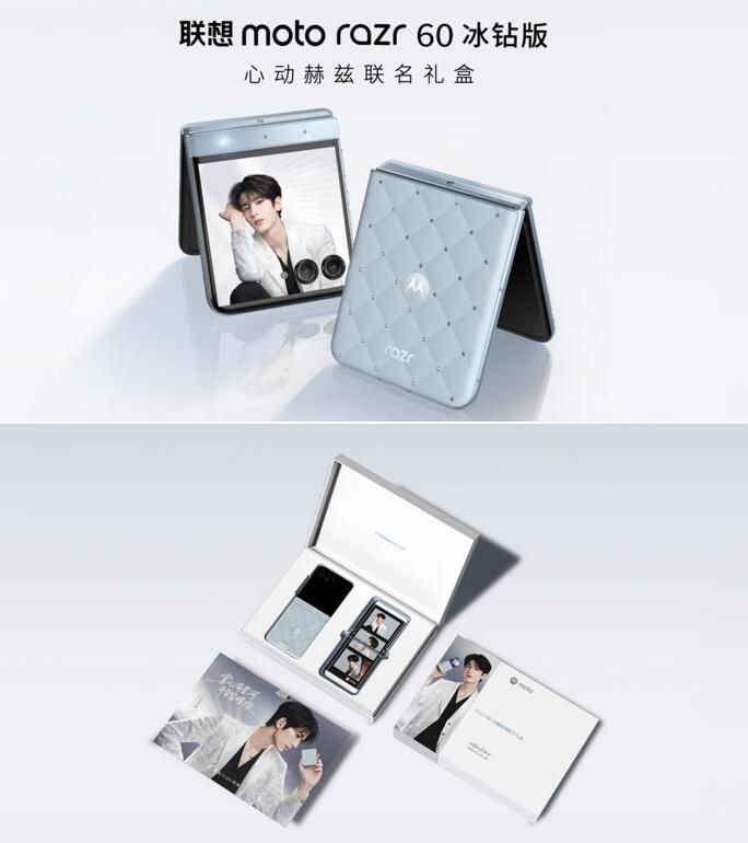 除了联想 moto X70 Air AI 手机,发布会上揭晓的联想 moto razr 60 心动赫兹联名礼盒也备受关注。这款限量版礼盒售价 4399 元,内含联想 moto razr 60 冰钻版手机,机身采用独特的冰钻纹理设计,颜值出众;同时搭配张凌赫专属收藏卡、充满故事感的 “人生三格写真”,以及张凌赫亲自参与设计的签名保护壳。每一件物品都承载着专属意义,无论是自用还是收藏,都极具价值,尤其适合粉丝群体。