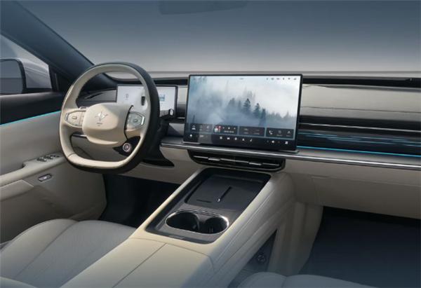 内饰提供星际曜黑、暖山玉白以及流光金橙三种内饰可选,整体布局基本延续了eπ007 的风格,标配10.25英寸仪表盘、15.6英寸中控屏,高通骁龙SA8295P车规级芯片,还支持540度全景影像哨兵模式。